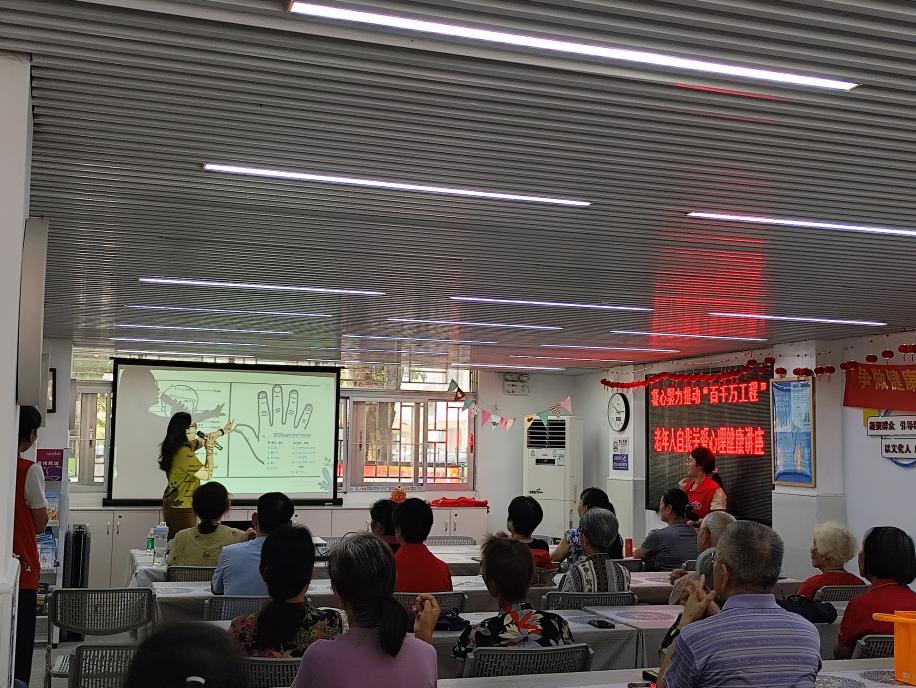 2025年7月7日上午,罗湖东乐社区在党建引领下,积极响应“百千万工程”,举办了一场主题为“争做健康领航人,素养提升我先行”的老年人自我关爱心理健康讲座。活动吸引了40名社区长者,旨在通过科学的心理健康知识普及,帮助老年人提升自我关爱意识,促进身心健康。