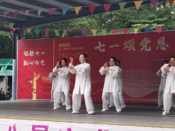 多元参与筑同心。党委统筹的广场舞《十谢共产党》、太极《八法五步》等节目,吸引50余名社区居民主动参演;乒乓球赛事、思维公开课等互动环节,让群众在参与中感受党建文化的活力。现场党员们为群众提供引导服务,鲜红的红马甲成为活动现场最亮丽的风景线。