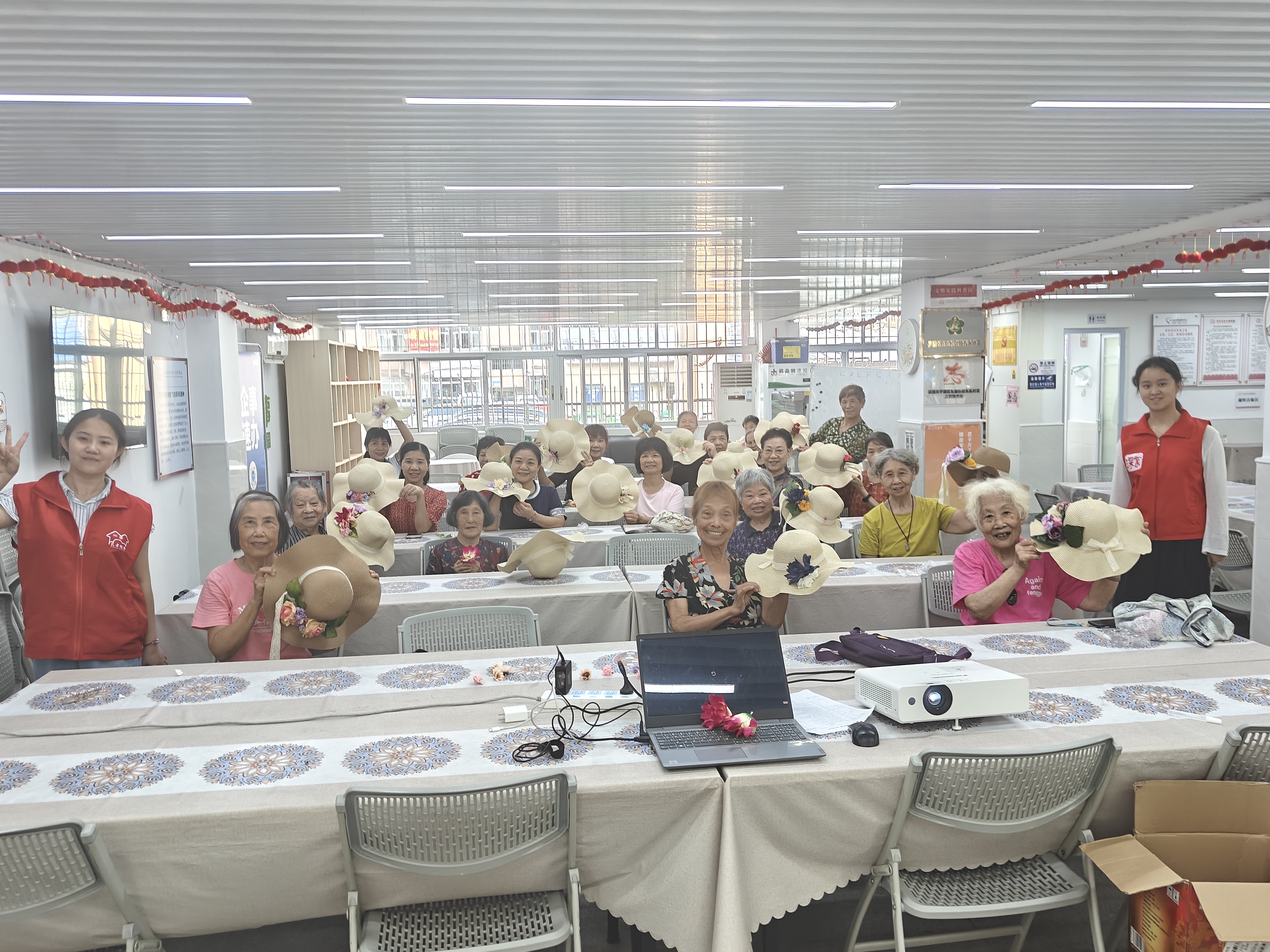 2025年8月12日,东乐社区开展长者草帽艺术创作活动