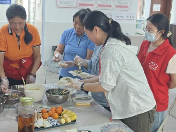 活动是社区深化“百千万工程”建设、丰富为老服务内涵的生动实践。长者们围坐一堂,从摊饼皮、配菜料到动手卷制,每一步都充满乐趣与协作。饭堂里香气四溢,邻里情谊在美食制作中悄然升温。这不仅是一次手工体验,更是社区搭建社交平台、促进长者互动、提升生活幸福感的具体举措。
