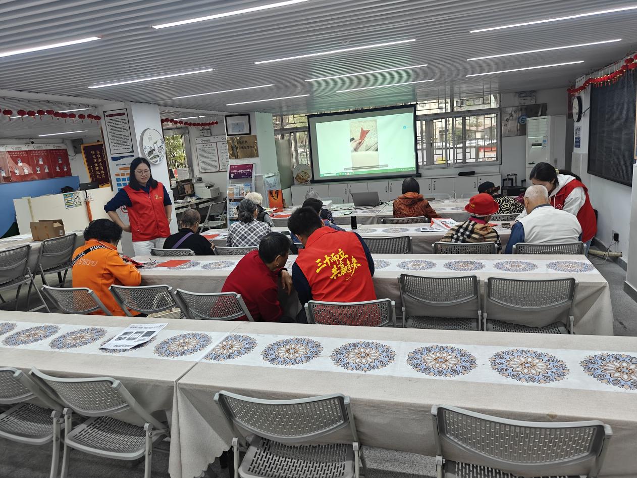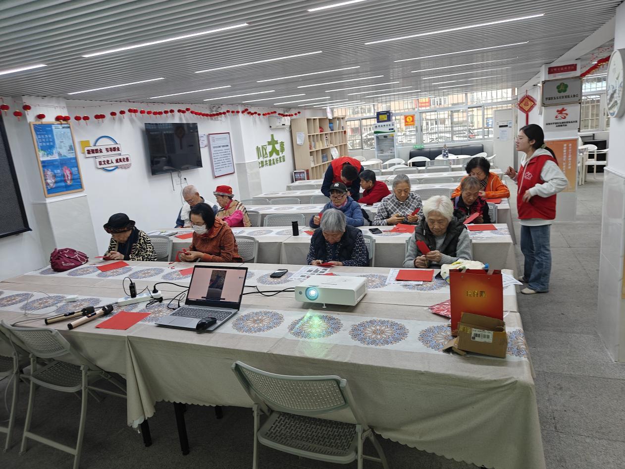 此次活动是社区深化“百千万工程”建设,丰富长者精神文化生活的创新实践。活动现场,长者们悉心学习剪纸技法,在专业指导下创作出各式精美图案。方寸红纸不仅承载着非遗文化的传承,更成为连接邻里情感的纽带。饭堂空间由此拓展为文化传承与社交互动的新平台。