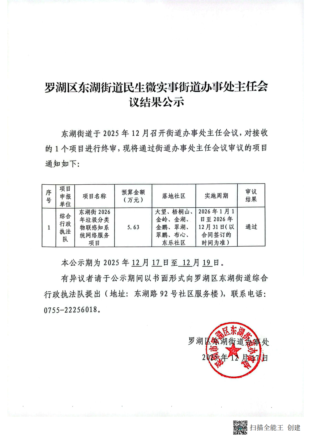 罗湖区东湖街道民生微实事街道办事处主任会议结果公示