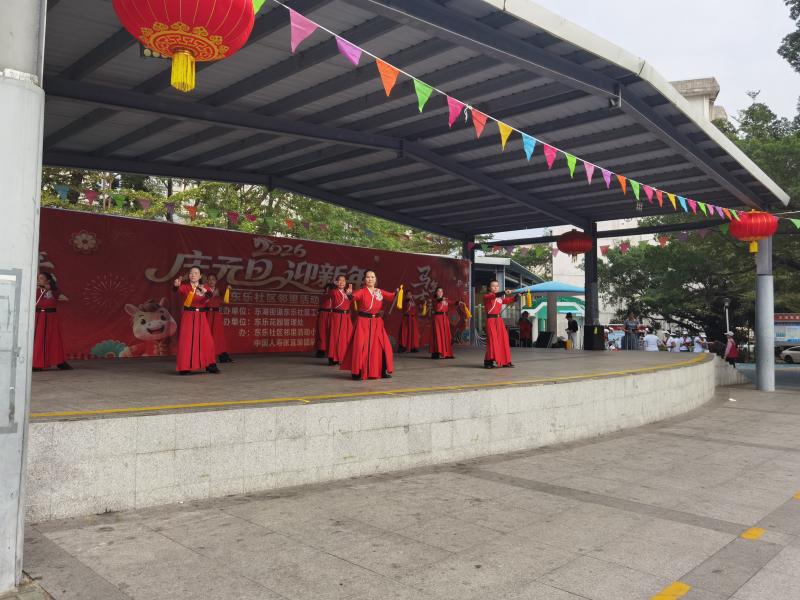 2025年12月29日,东乐花园文体广场洋溢着欢乐喜庆的节日气氛,“庆元旦·迎新年”社区邻里表演活动在此精彩上演。活动吸引了200多名社区居民欢聚一堂,共同迎接新年的到来。