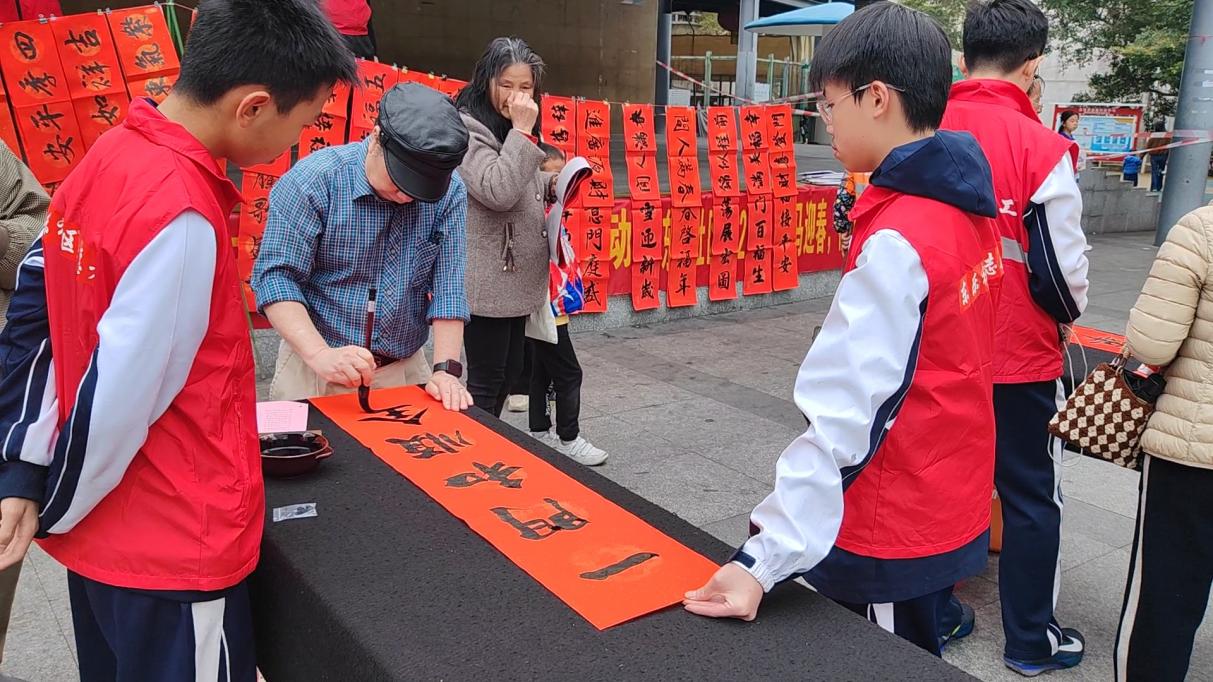 【骏马送福・墨香传情】环节墨香四溢,志愿者现场挥毫,150份新春对联免费赠给居民,每一副都承载着新年期许。南粤家政公司同步赠送对联,让墨香祝福传递至更多家庭。