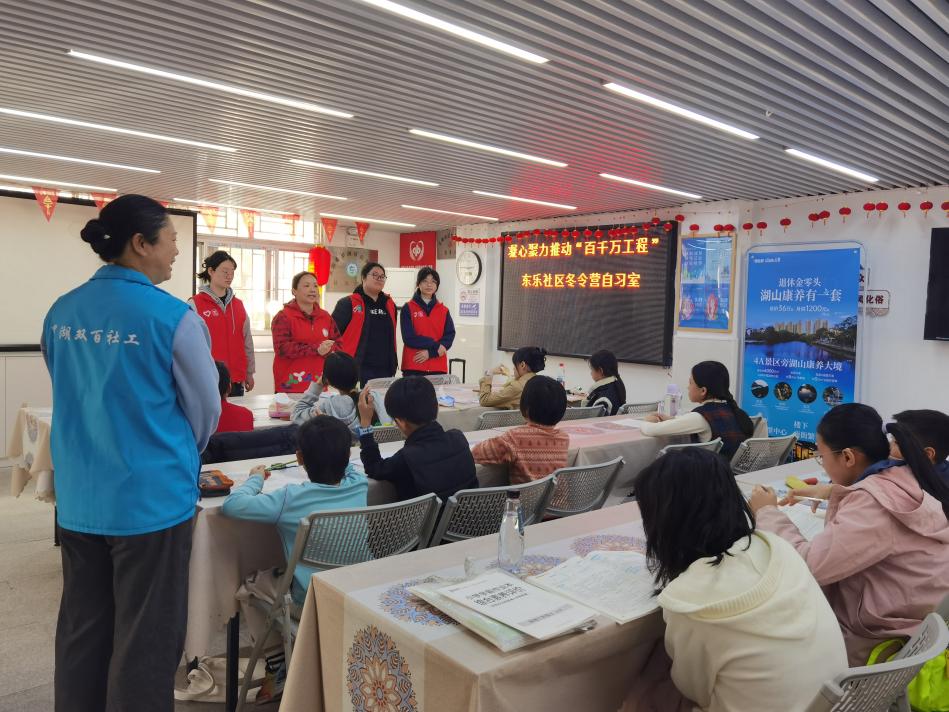 “乐活东乐”冬令营自习室顺利开班,大学生志愿者助力社区托管服务