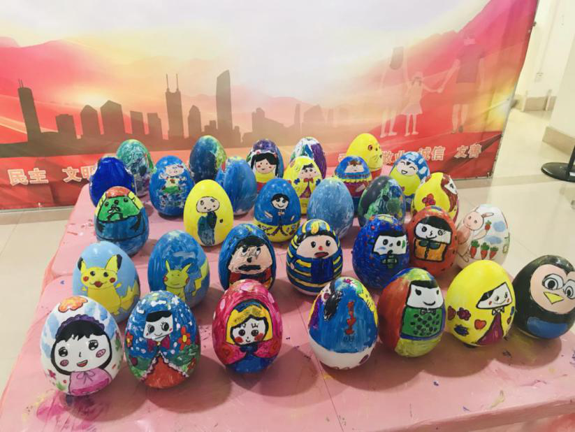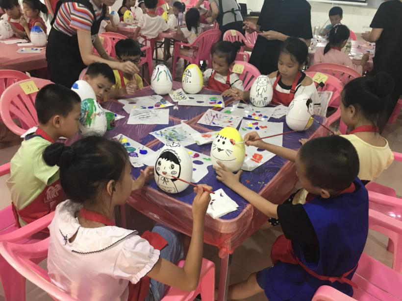 之后,小朋友们纷纷表示出对彩绘不倒翁的极大兴趣,并在老师的指导下设计出自己喜欢的不倒翁图案。然后选用各种染料绘制独特创意的图案。虽然在创作过程中也遇到过难题,比如不知道颜色如何调出来,但是小朋友们都互帮忙,并耐心请教学习。到本次活动结束时,每个小朋友都完成了属于自己的作品。