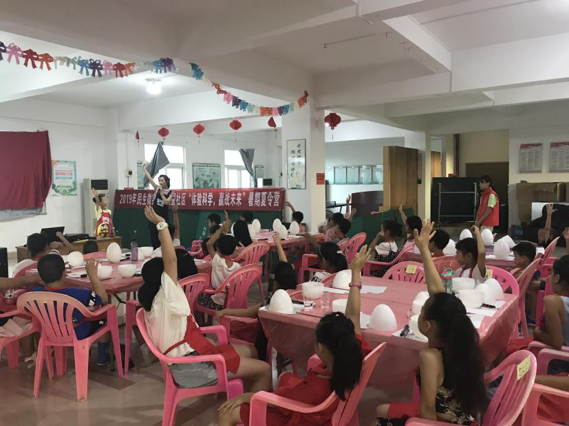 2019年7月19日,由大望社区党委、大望社区居委会、大望社区工作站和大望社区党群服务中心主办,深圳市环宇社区公益事业服务中心承办的的大望社区“体验科学,赢战未来”暑期夏令营之彩绘不倒翁活动在大望股份公司四楼正式开启。