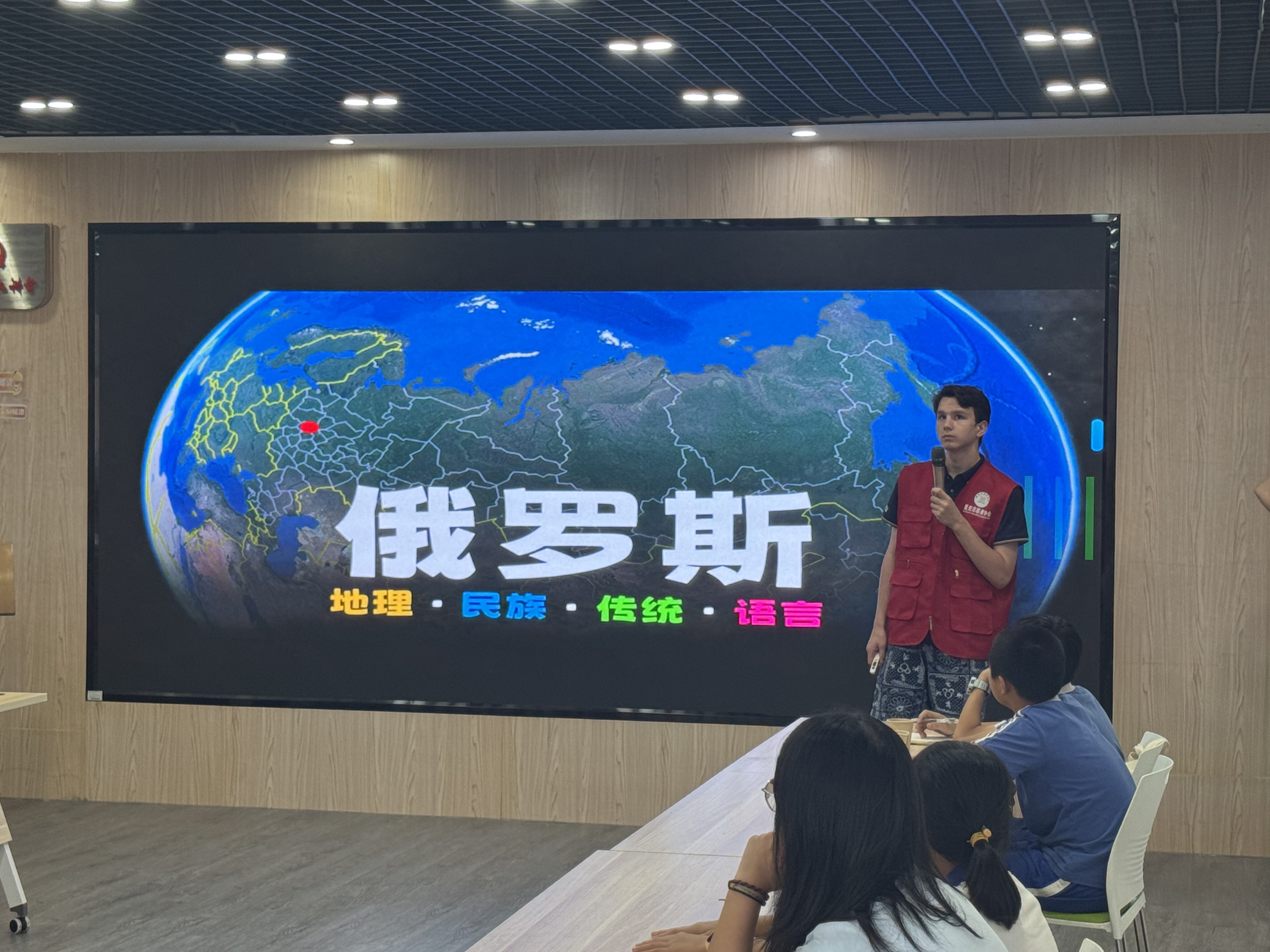2025 年 7 月 8 、11 日,深圳北理莫斯科大学——深 北莫"星光育桐"实践团,以“文化+互动 ”的创新形式, 为 25 名儿童带来一场沉浸式中俄文化体验课。活动通过 视频、游戏等多元手段,将俄语字母学习与丝绸之路历 史、俄罗斯文化深度融合,助力孩子们在趣味中感知世 界。