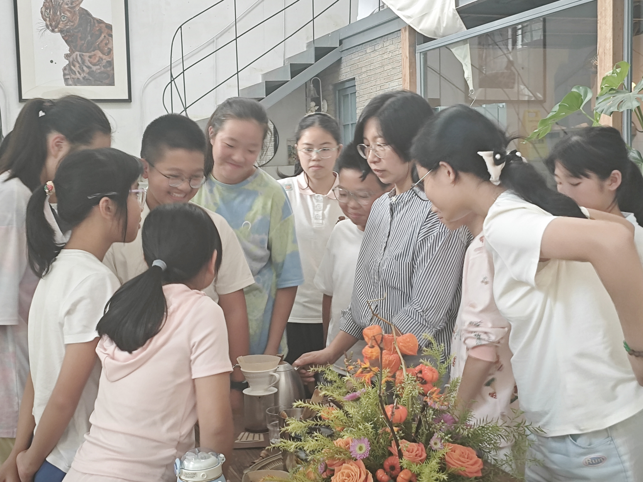 最让孩子们兴奋的当属亲手实践环节。在咖啡师的指导下,孩子们小心翼翼地称量咖啡豆、缓慢转动研磨机、平稳把控水流,亲手完成属于自己的第一杯手冲咖啡。当看着棕色的咖啡液缓缓滴入杯中,再品尝到自己冲泡的成果时,孩子们的脸上都洋溢着自豪的笑容,纷纷表示“这是我喝过最特别的咖啡”。