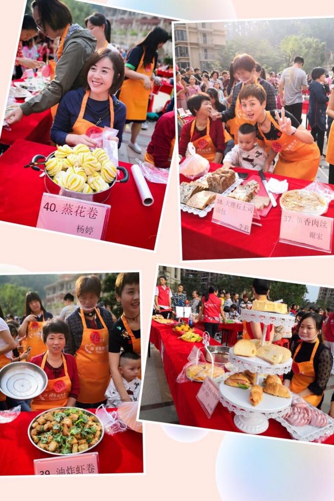 戚风蛋糕、可乐鸡翅、双馅韭菜盒子、全家福、蜂糖鸭、沙姜鸡、欧包……各式各样色彩味俱全的美味佳肴一盘盘汇聚在金湖社区第三届美食节的餐桌上,大家欢聚一堂、谈笑风生,现场居民参与热情高涨。
