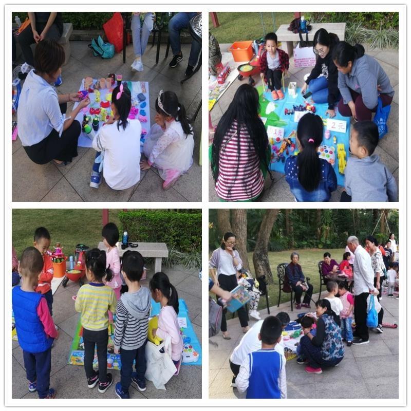 这次跳蚤市场按计划是 下午14点30分开始,有2户居民14点的时候就已经摆好了自己的摊位,随后陆续有社区居民把家中的闲置物品搬出来,陈列在广场摊位上,一些路过的居民很快就围了过来开始淘自己 合意的“宝贝”。市场里有以物易物的、也有现金交易的,小朋友们是交易活动的主角,又换又卖的,真是忙并快乐着!
