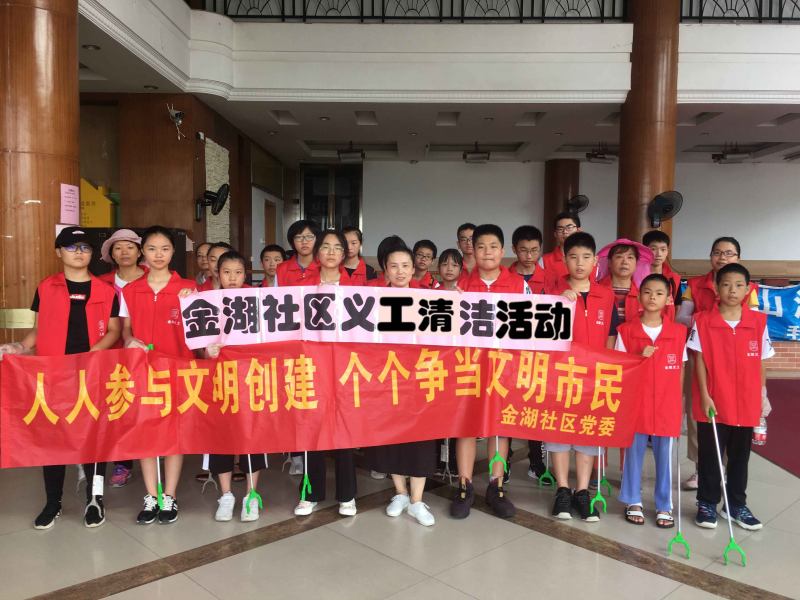 “人人参与文明创建,个个争当文明市民”金湖社区义工清洁活动