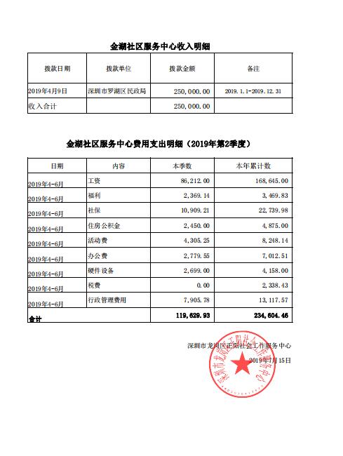 金湖社区党群服务中心2019年第二季度财务公示明细