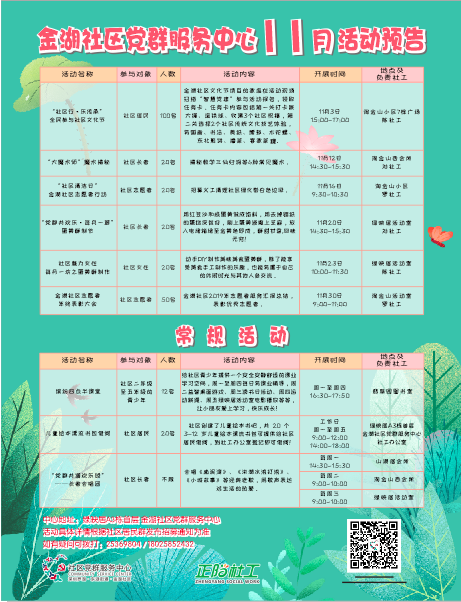 金湖社区党群服务中心11月活动预告