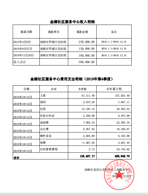 金湖社区党群服务中心2019年第4季度费用支出明细表