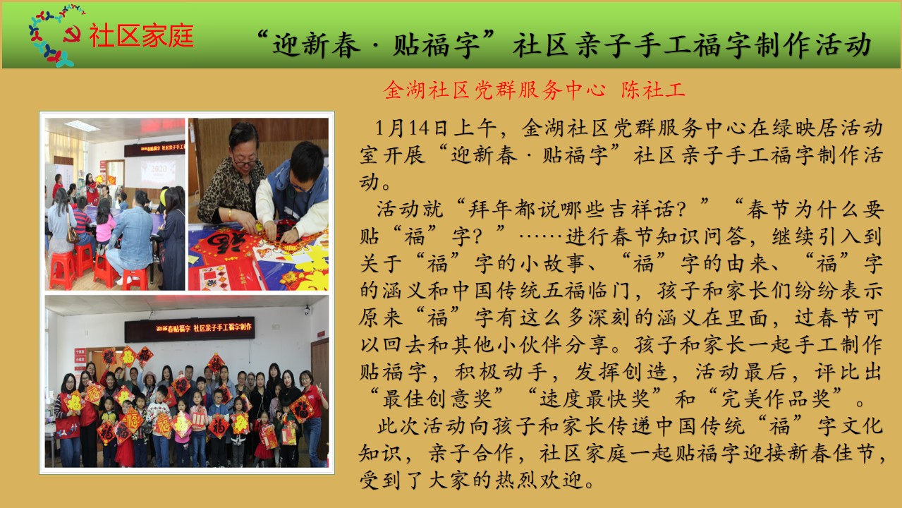 金湖社区党群服务中心2020年1月活动简报