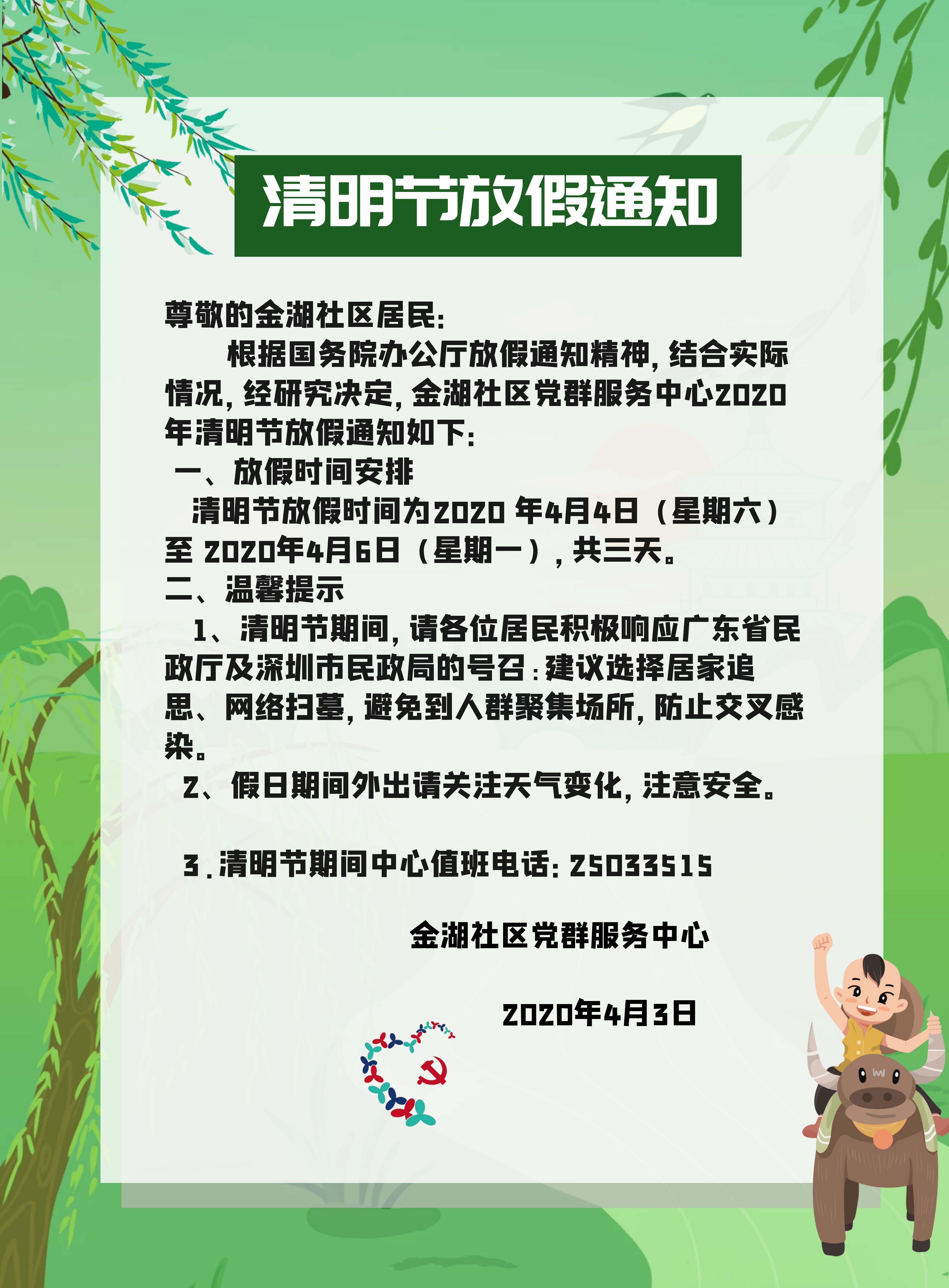 金湖社区党群服务中心清明节放假通知