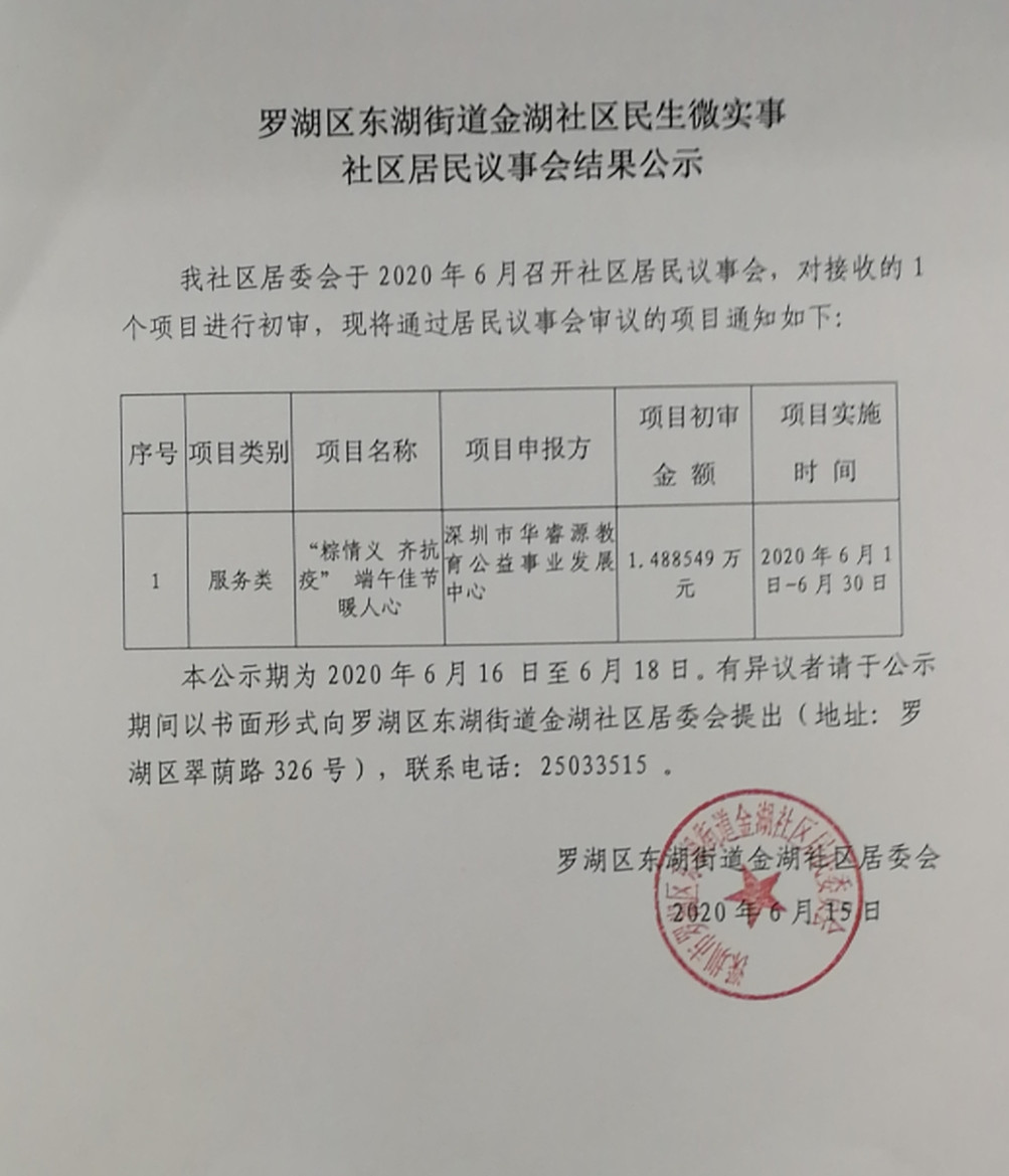 罗湖区东湖街道金湖社区民生微实事社区居民议事会结果公示