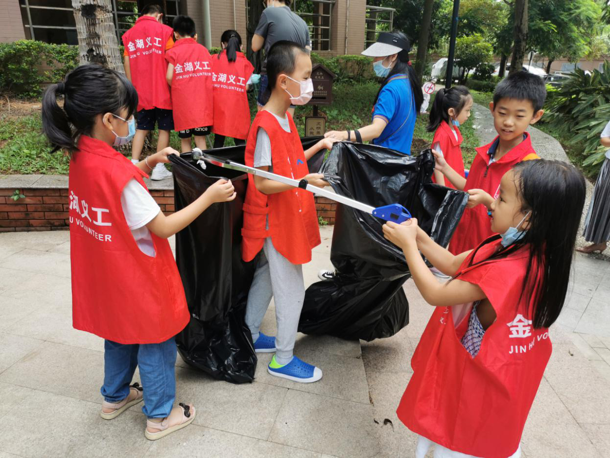 金湖社区开展山湖居小区清洁日青少年志愿行动