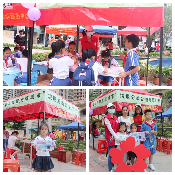 罗湖家园网讯:9月7日下午,金湖社区党群服务中心在淘金山小区开展了以创建文明城市为主题的“分分”出美丽-志愿少年先锋队环保组之垃圾分类活动。