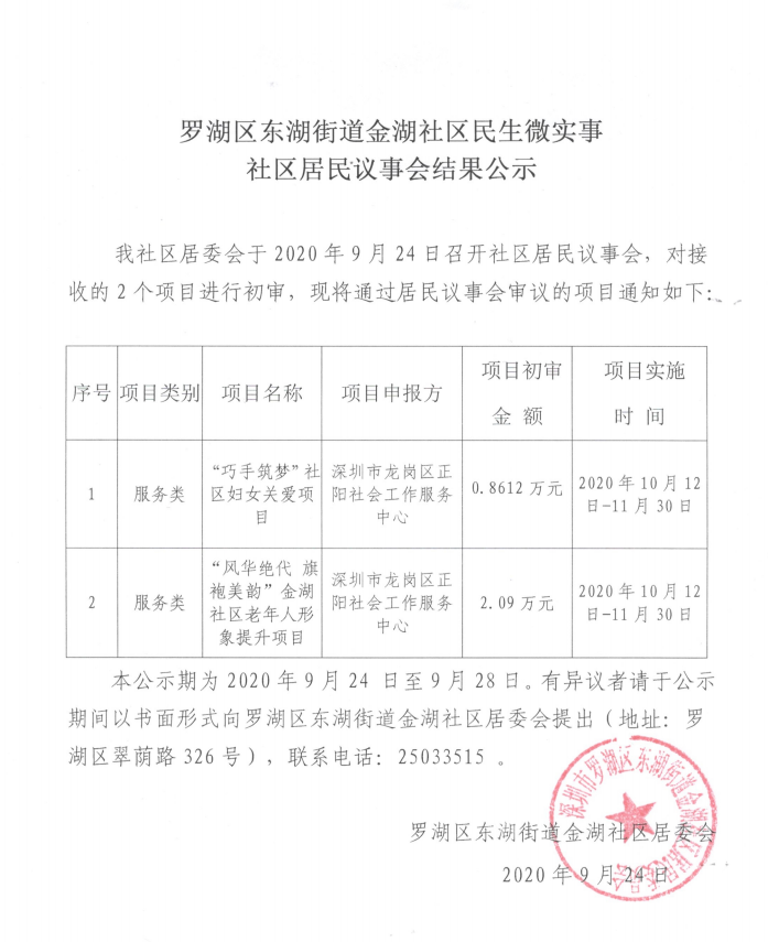 东湖街道金湖社区民生微实事社区居民议事会结果公示