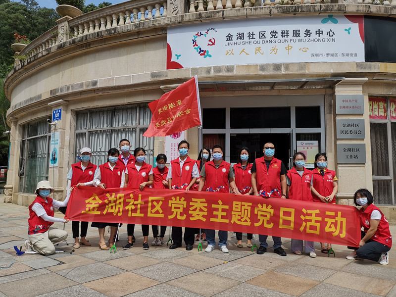 罗湖家园网讯:9月26日上午,金湖社区在淘金山小区开展了“党建引领助力创文”主题党日活动,社区工作站全体党员和社区工作者参加了活动。