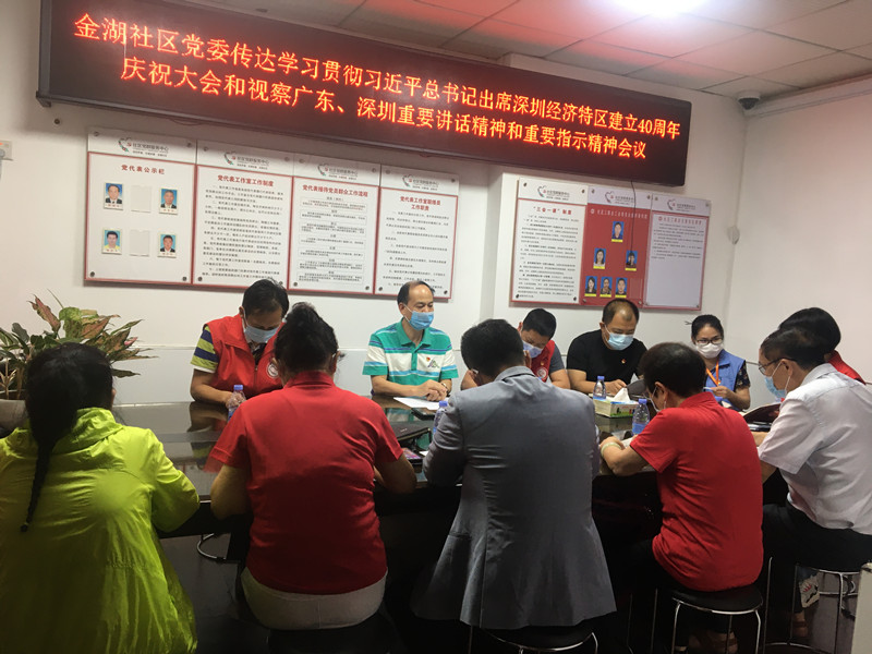 10月22日下午,金湖社区在会议室召开了党委扩大会议,金湖社区第一书记曾列文、金湖社区党委班子及社区各支部书记参加了会议。会上,传达学习了省、市、区贯彻习近平总书记在出席深圳经济特区建立40周年庆祝大会和视察广东、深圳重要讲话精神和重要指示精神。