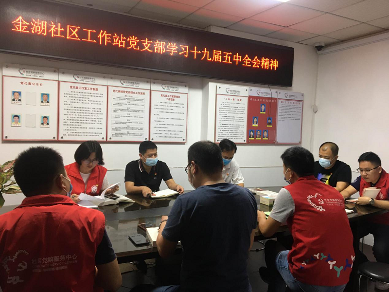 近日,东湖街道金湖社区7个党支部先后对党的十九届五中全会精神进行了学习宣讲。
