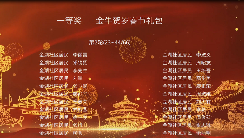 “牛年送福,大吉大利”金湖社区福气春节礼包抽奖活动获奖名单