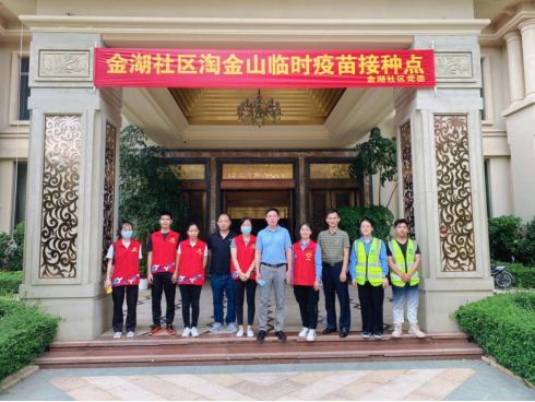 东湖街道工作人员及中建一局党员志愿者协助金湖社区疫苗接种