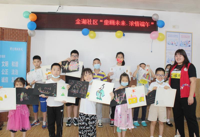 罗湖家园网讯:5月28日上午,在罗湖区东湖街道金湖社区党委的支持下,金湖社区党群服务中心的社工组织开展了“童画未来,浓情端午”六一儿童节活动,活动共吸引了15名左右儿童参加。