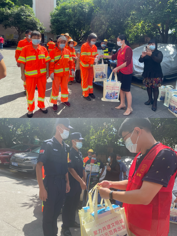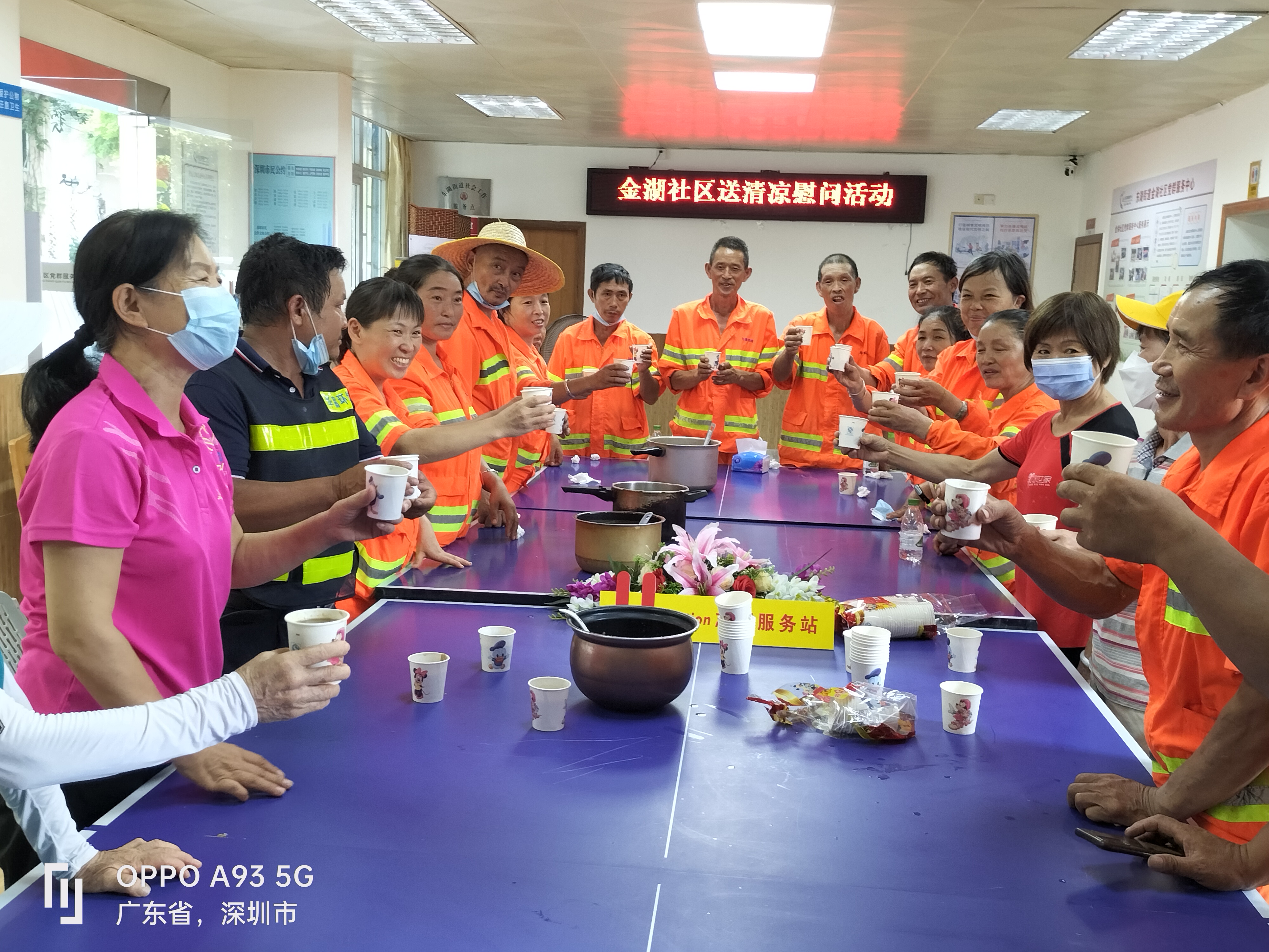 活动最后,为向酷暑夏日中辛勤付出的环卫工人表示感谢,金湖社区老年协会成员准备了降暑糖水,在炎炎夏日送上一抹清凉。