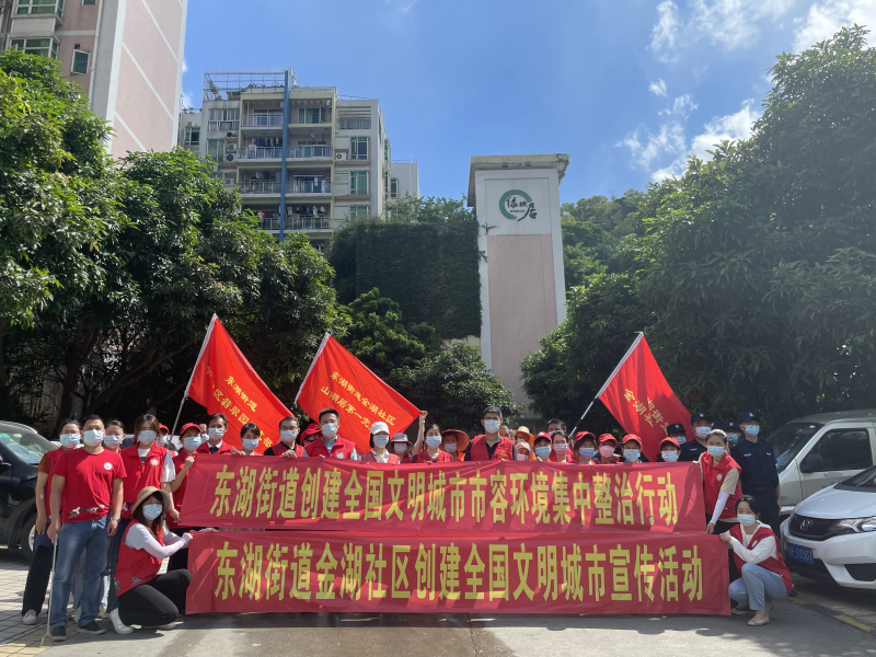东湖街道党工委委员、金湖社区第一书记唐亚萍,办事处副主任、综合行政办主任李旭;党建办下沉干部、应急管理办下沉干部、行政执法部门人员、华富环卫工人、社区党员居民志愿者等50余人参与了本次行动。