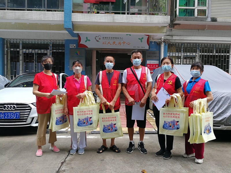罗湖家园网讯:2022年8月,金湖老协积极参与深圳创建文明城市入户宣传志愿者活动,为深圳创文助力加油!