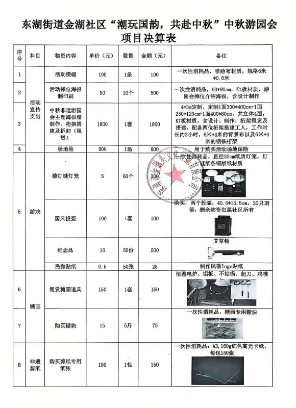东湖街道金湖社区“潮玩国韵,共赴中秋”中秋游园会项目决算表
