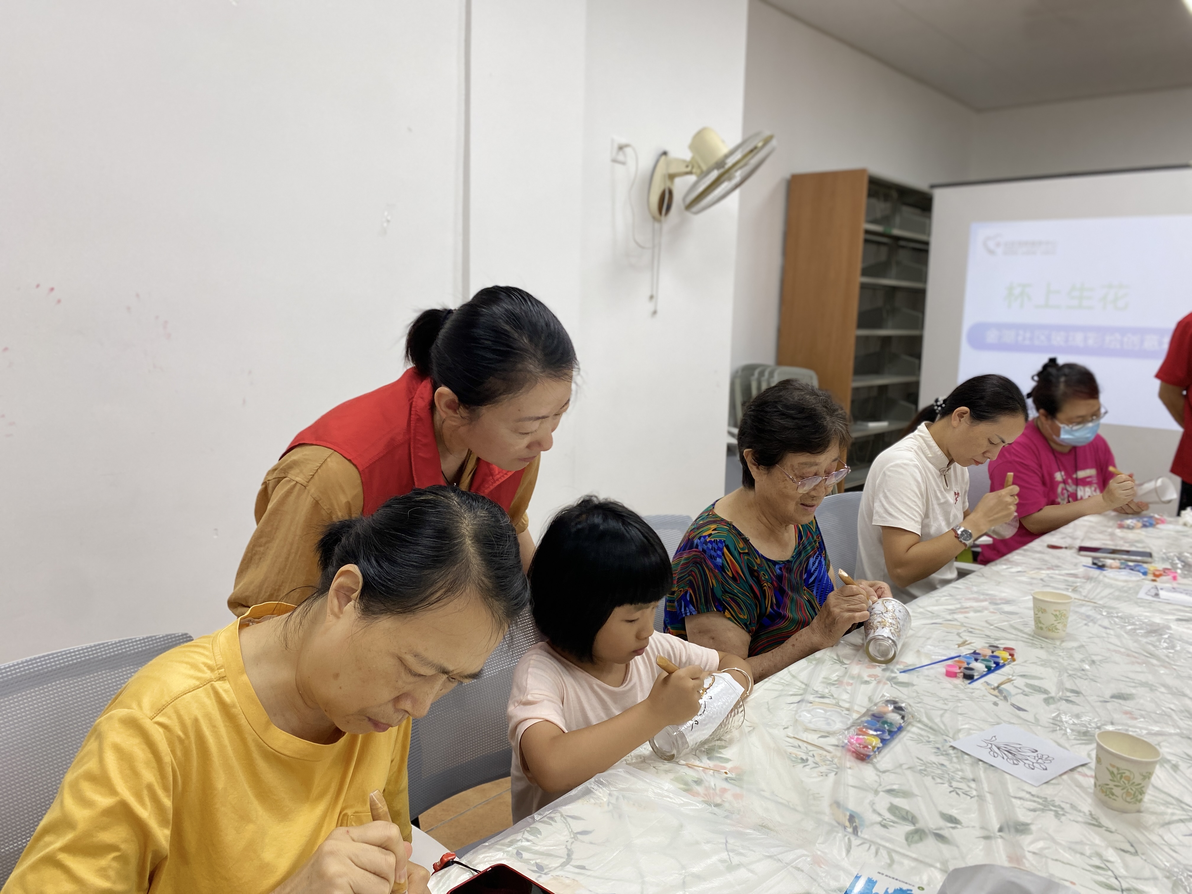 罗湖家园网讯:为引导长者体验艺术创作乐趣,锻炼手眼协调能力,提升生活幸福感,营造温馨和谐的社区氛围。近日,在金湖社区党委的引领下,金湖社区党群服务中心开展了“杯上生花”玻璃彩绘创意坊活动,吸引了15位社区长者热情参与。 本次“杯上生花”玻璃彩绘旨在提升社区长者的艺术素养与审美能力,丰富其精神文化生活,展现基层社区在应对人口老龄化问题上的创新思路——用艺术之光照亮银龄生活,以文化之力凝聚社区共识。