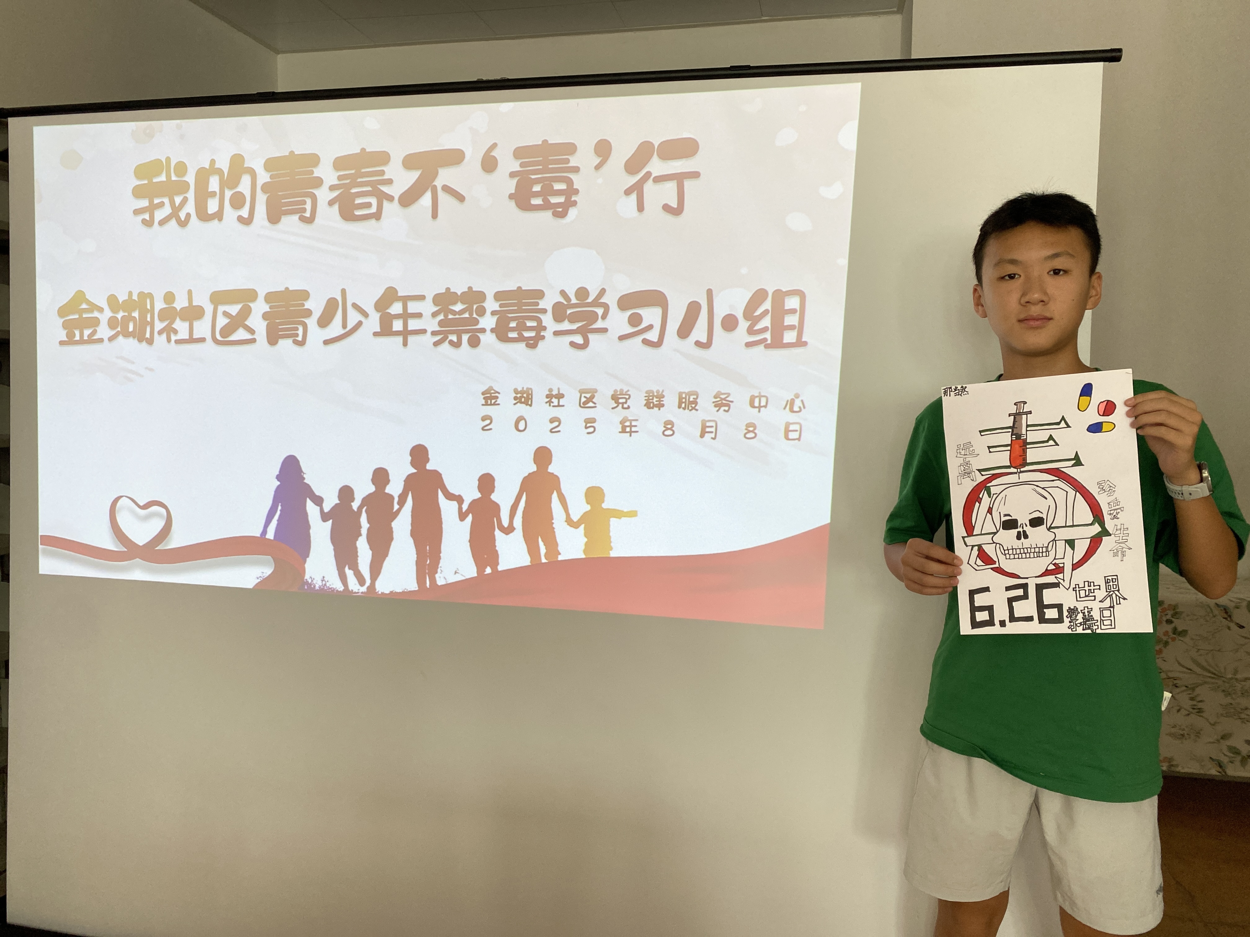 罗湖家园网讯:为筑牢青少年禁毒防线,营造健康无毒的成长环境,金湖社区党委、金湖社区党群服务中心联合东湖街道禁毒办于近日成功举办“我的青春不‘毒’行——金湖社区青少年禁毒学习小组”活动。该活动突破传统宣讲模式,创新融合游戏、推理、沉浸体验与艺术表达等多元化手段,为社区10名青少年带来了一场入脑入心的禁毒“免疫”教育,帮助他们在趣味互动中筑牢拒毒思想防线。