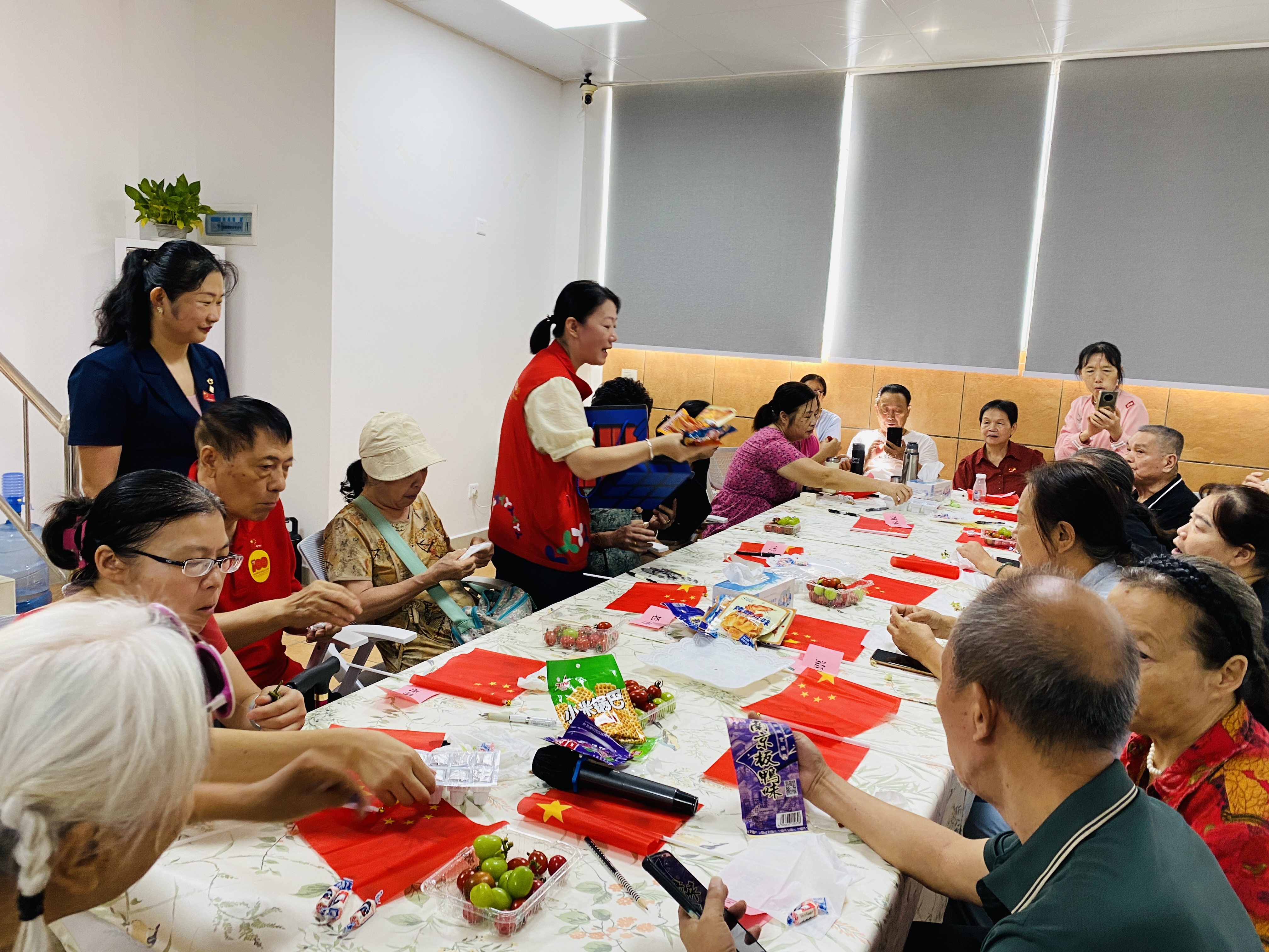 罗湖家园网讯:随着我国进入深度老龄化社会,“积极老龄化”已从社会愿景上升为国家战略,为了让银发岁月焕发时代光彩,值此国庆节来临之际,金湖社区党群服务中心特别策划并举办了以“左邻右舍话国庆,老时光里忆峥嵘”为主题的长者国庆温情茶话会,20位社区长者欢聚一堂,共庆华诞,回味流金岁月。
