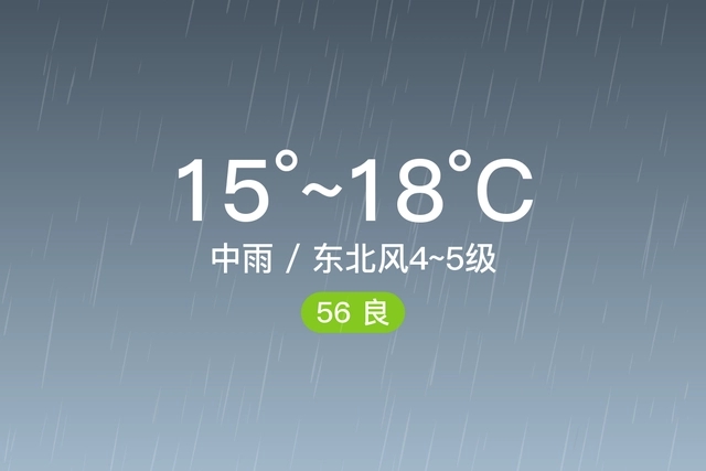 深圳罗湖,今日中雨,白天最高气温18℃,夜间最低温度15℃,东北风4~5级,空气质量良。