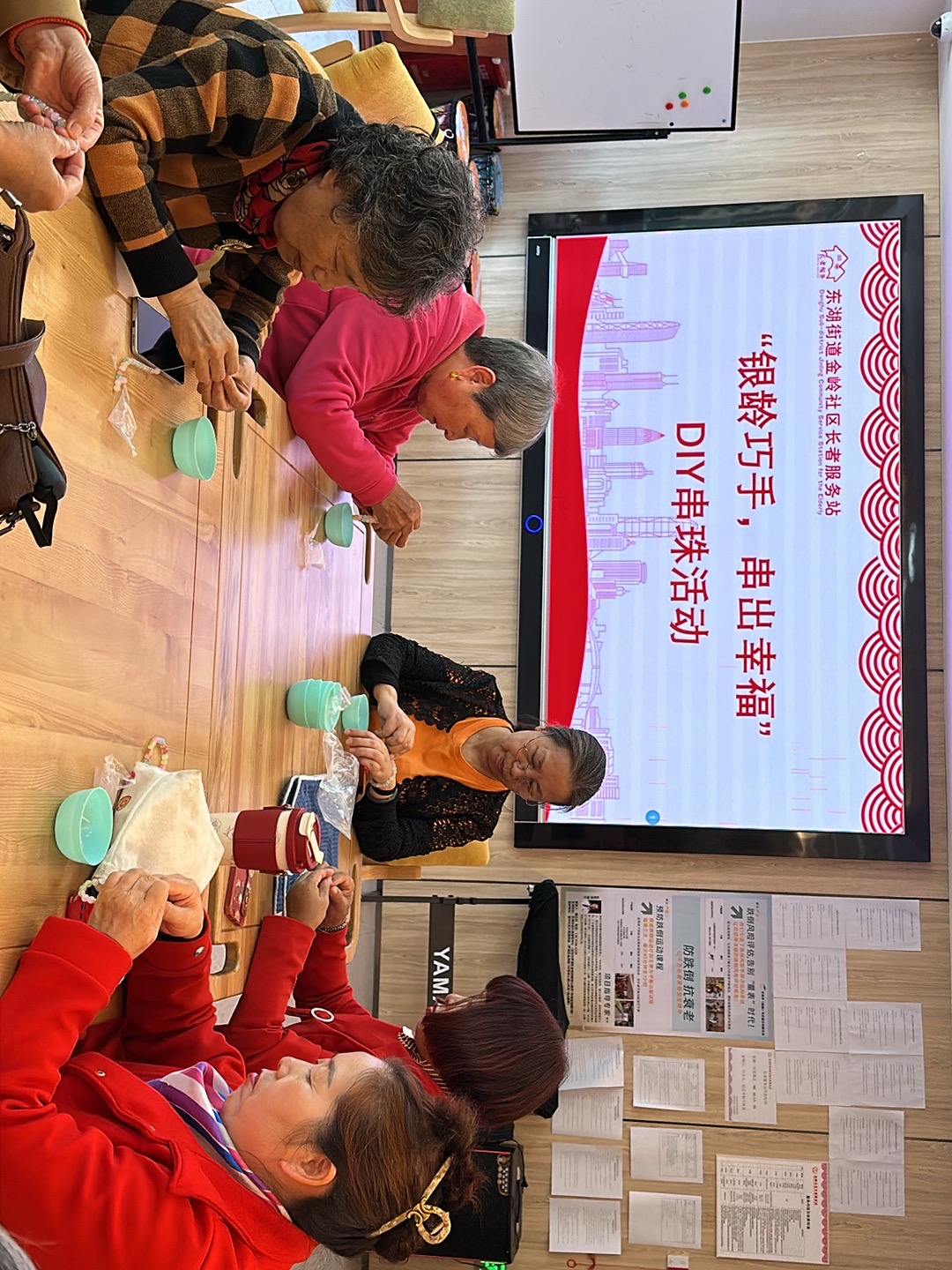 罗湖区家园网讯:2024年11月26日下午,金岭社区党委联动长者服务站开展“银龄巧手,串出幸福“”DIY串珠活动。