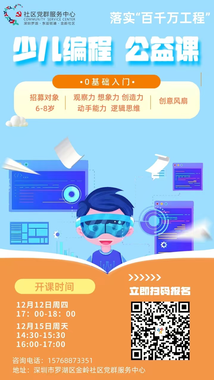罗湖区家园网讯:金岭社区12月第二周🎉精彩公益课程上线🎉
