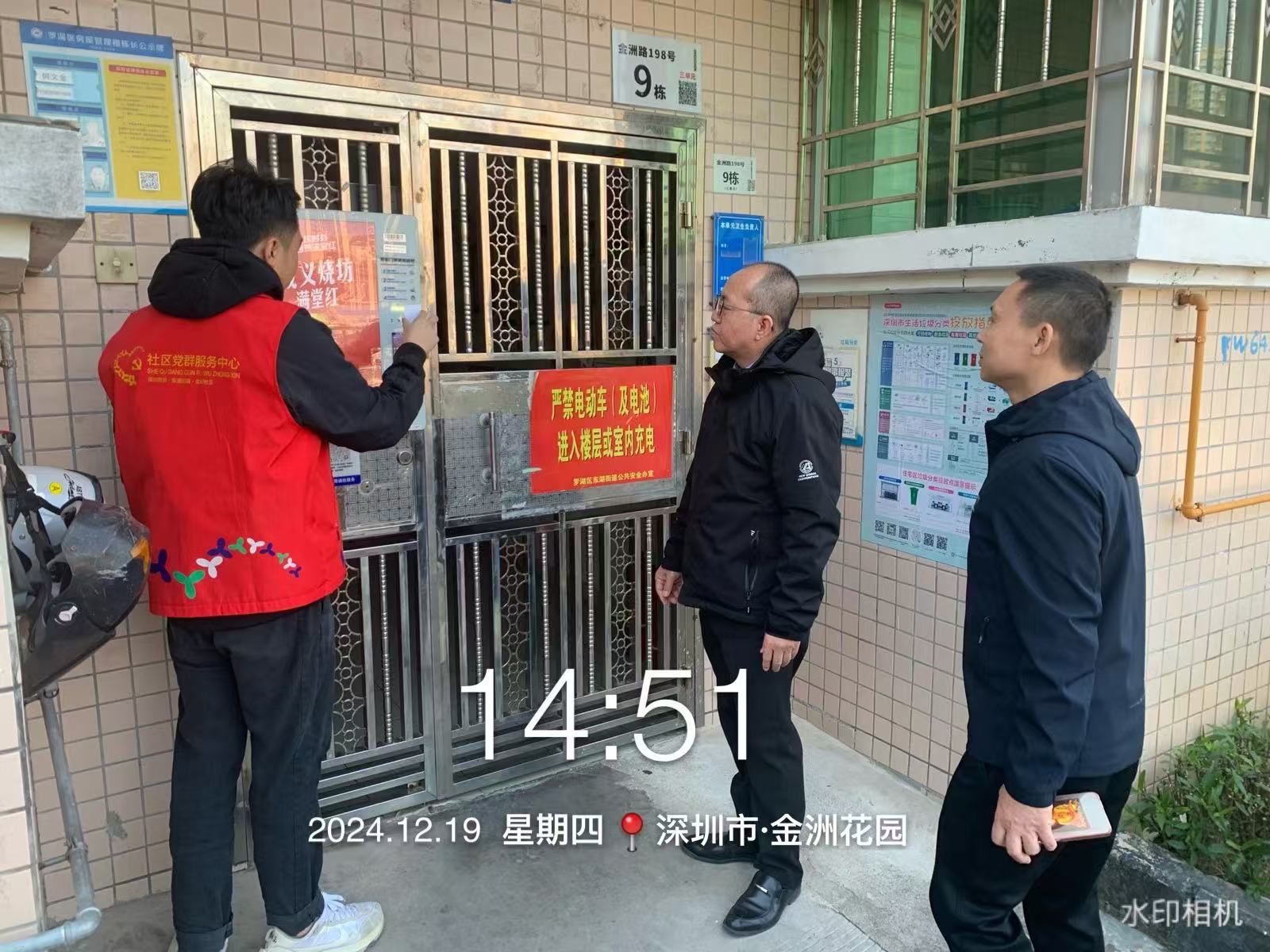罗湖区家园网讯:2024年12月19日下午,金岭社区联动金洲物业对金洲花园小区进行消防安全巡查工作。