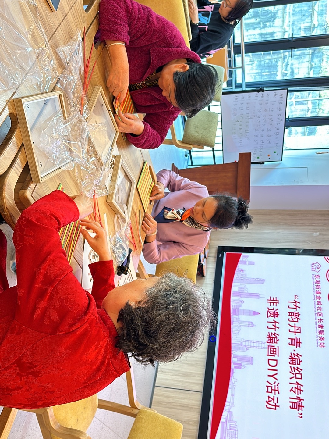 罗湖区家园网讯:2025年1月3日下午,金岭社区党委联动长者服务站开展“竹韵丹青·编织传情”非遗竹编画DIY活动。
