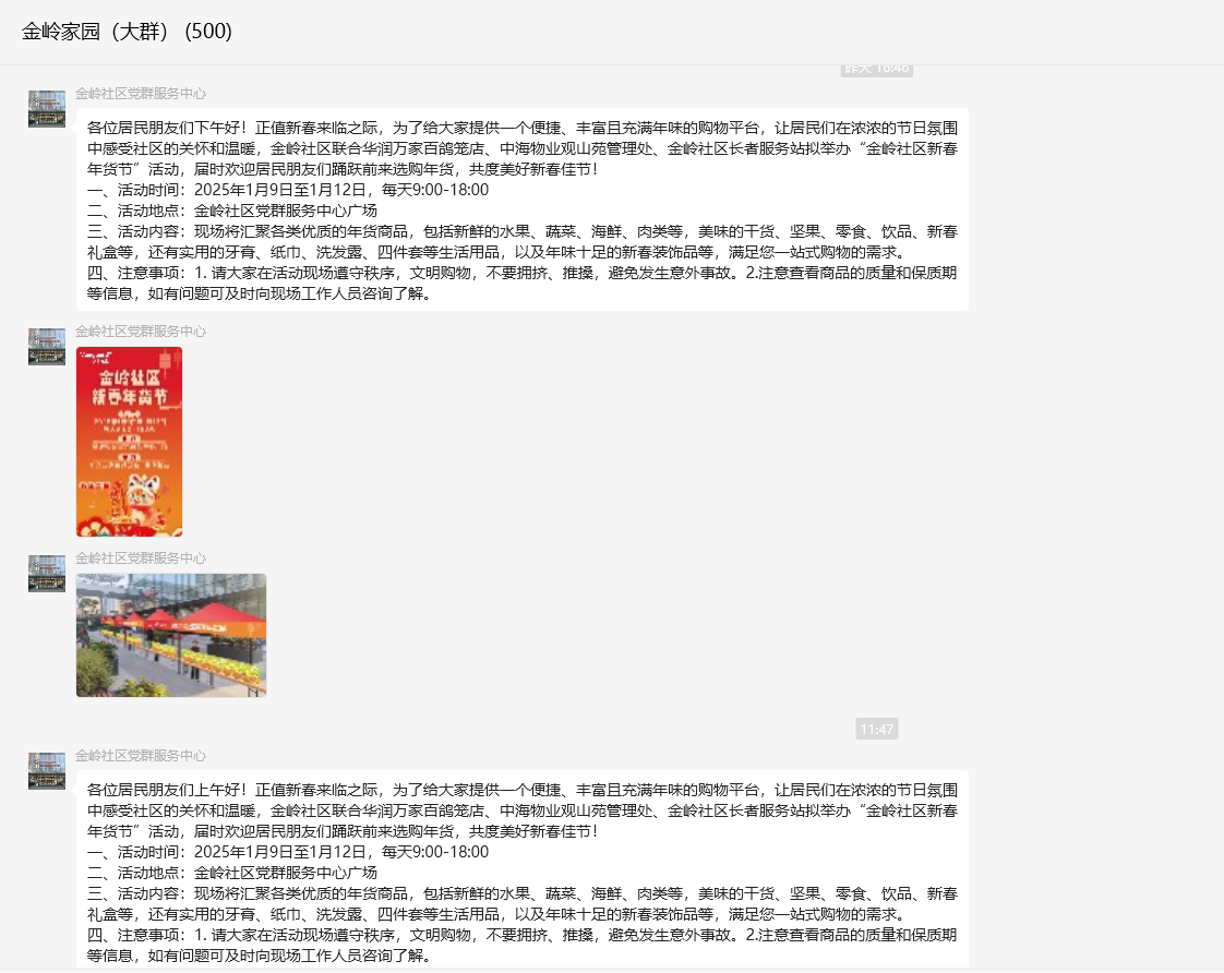 罗湖区家园网讯:各位居民朋友们上午好!正值新春来临之际,为了给大家提供一个便捷、丰富且充满年味的购物平台,让居民们在浓浓的节日氛围中感受社区的关怀和温暖,金岭社区联合华润万家百鸽笼店、中海物业观山苑管理处、金岭社区长者服务站拟举办“金岭社区新春年货节”活动,届时欢迎居民朋友们踊跃前来选购年货,共度美好新春佳节!