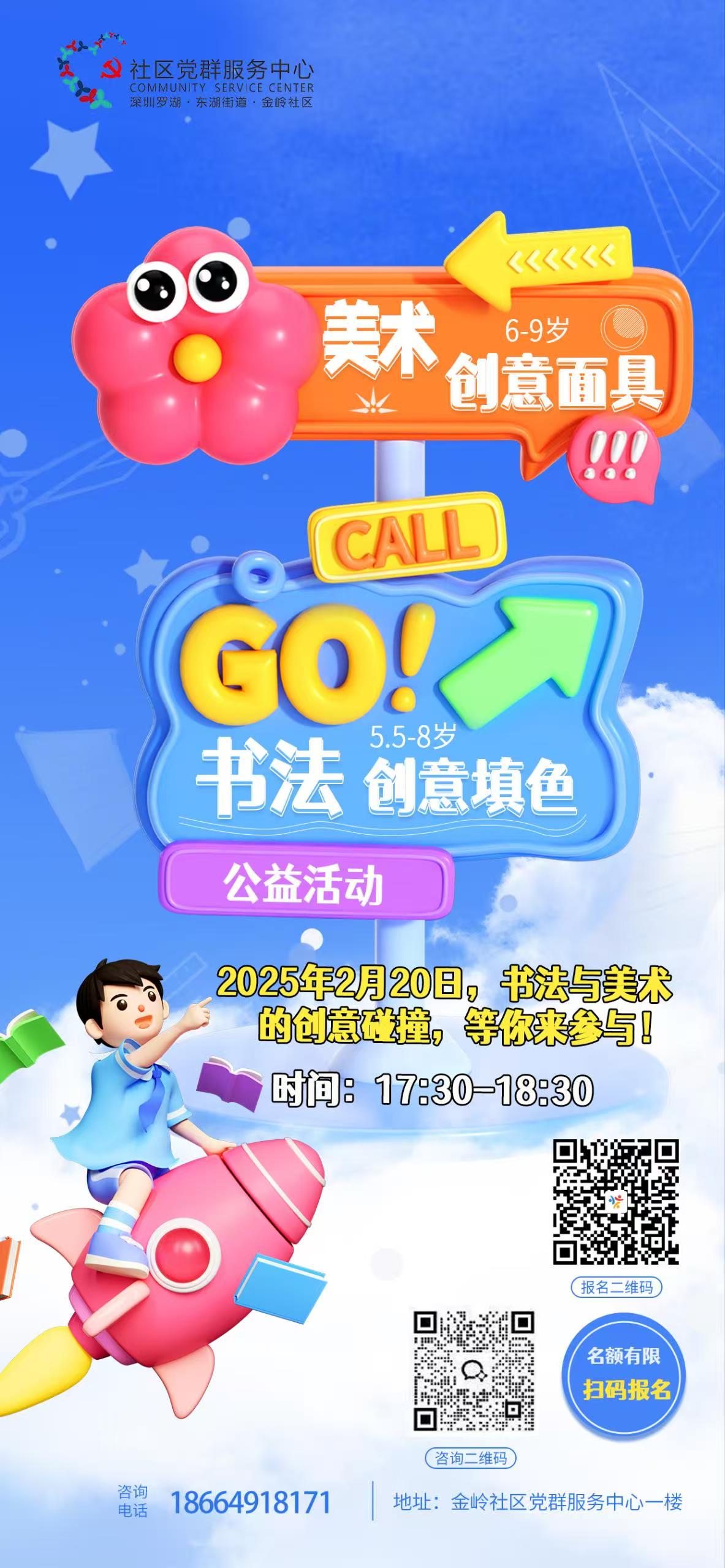 罗湖区家园网讯:金岭社区美术书法公益体验课活动招募!