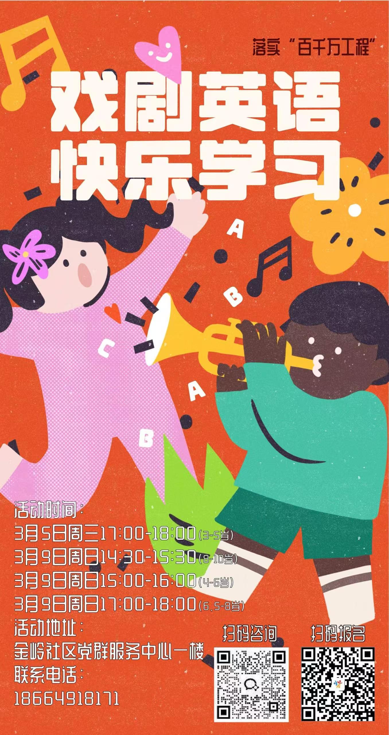 亲爱的家长和小朋友们:金岭社区本周公益活动预告来啦!我们为大家准备了以下活动,快来pick心仪活动吧!