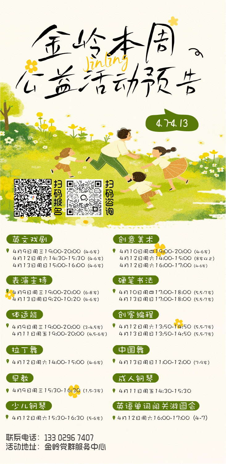 金岭社区党群服务中心4月第2周公益活动预告