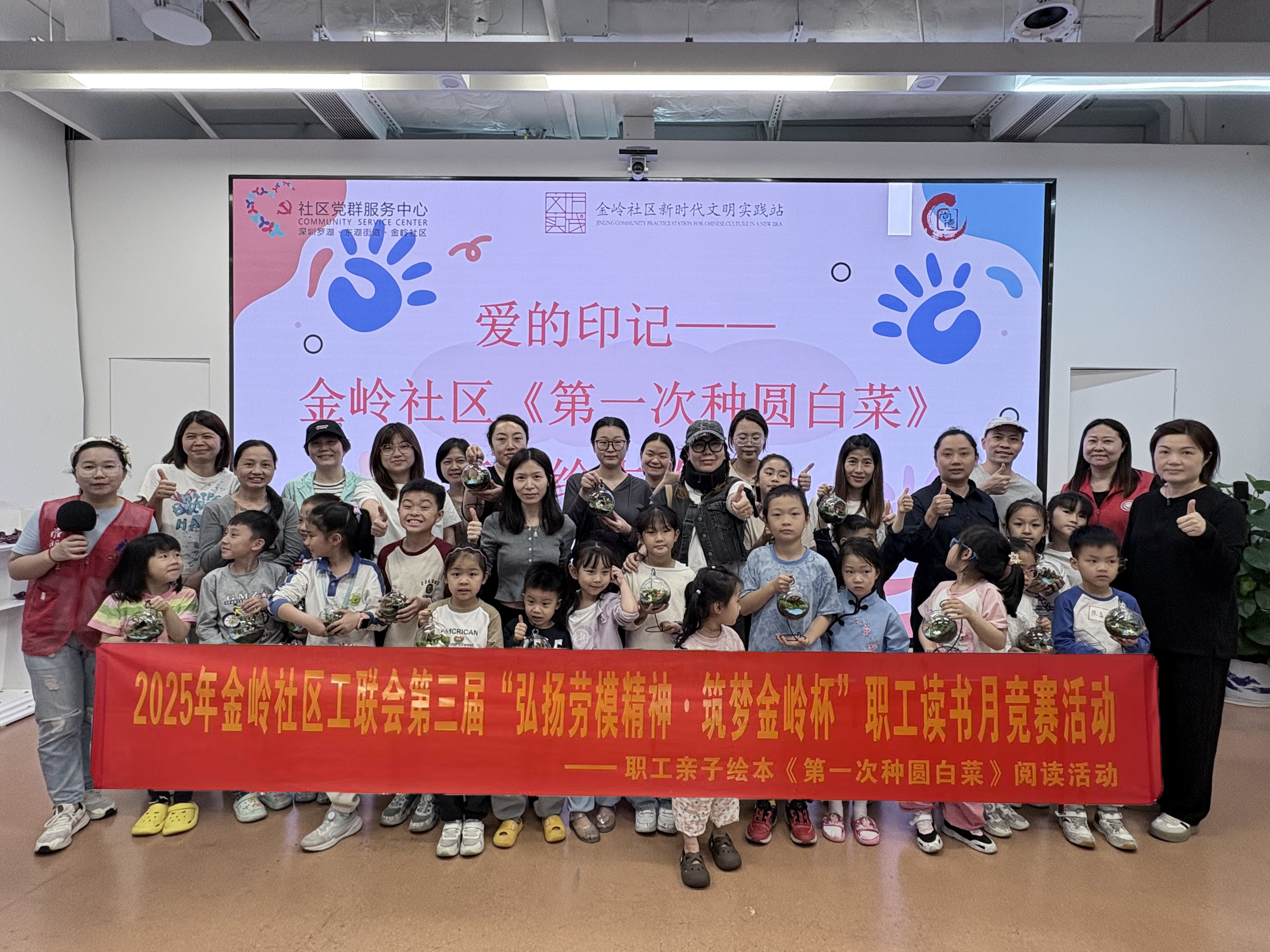 罗湖区家园网讯:亲子关系是人类社会的永恒话题,有家庭的地方就存在家庭教育的需求。近年来,国家越来越重视家庭教育问题,《中华人民共和国家庭教育促进法》草案中更是鼓励社工参与家庭教育指导服务,积极从实践工作中寻找更多解决家长不同程度的养育焦虑的方法。2025年4月12日,金岭社区党群服务中心联合东湖街道总工会组织开展了第三届“弘扬劳模精神·筑梦金岭杯”职工读书月活动之爱的印记——金岭社区《第一次种圆白菜》亲子绘本故事会。