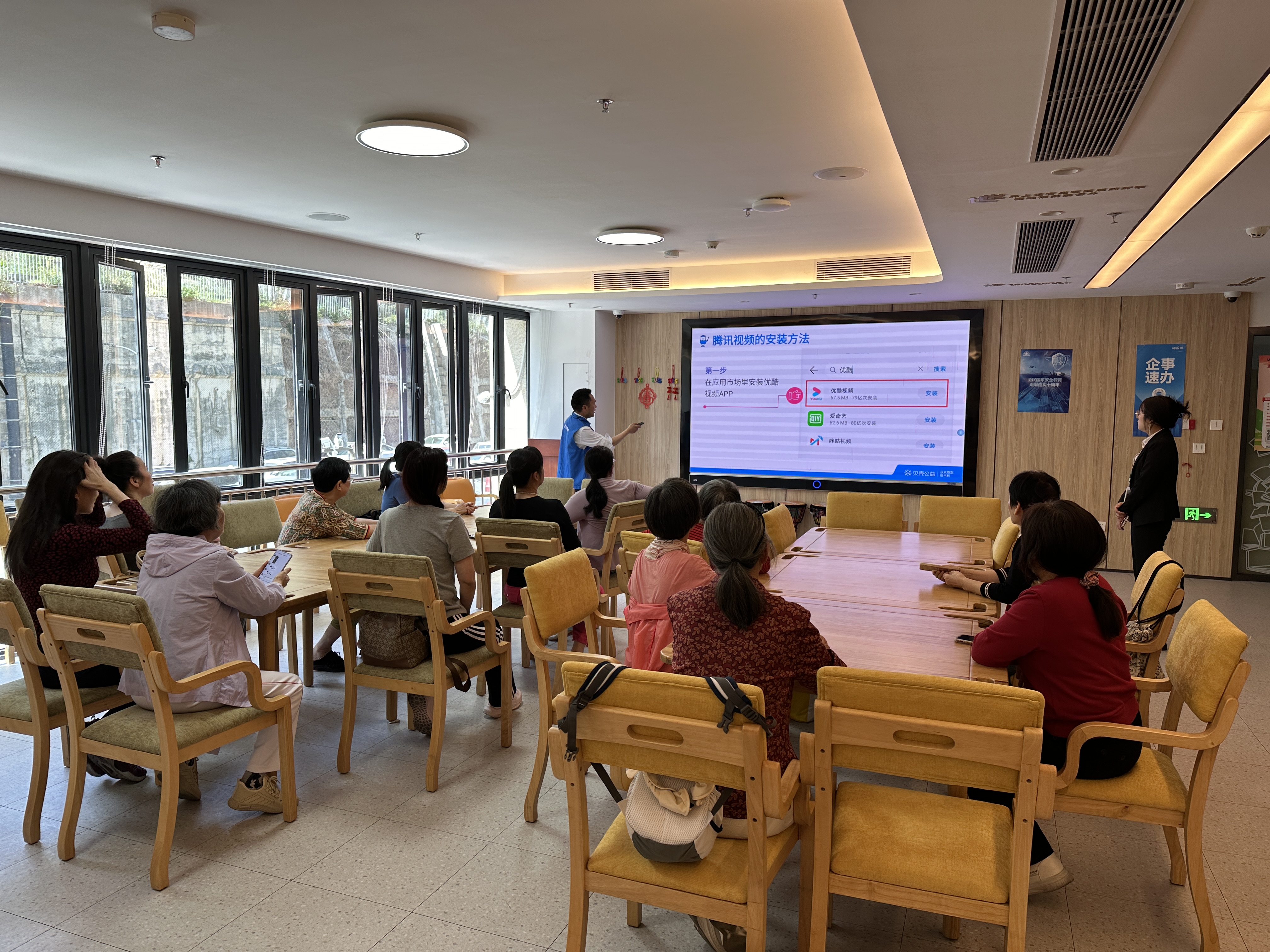 罗湖区家园网讯:2025年4月15日下午,金岭社区党委联动长者服务站开展“机”智生活,乐享银龄——长者手机课堂学习活动(使用视频软件观看视频)。