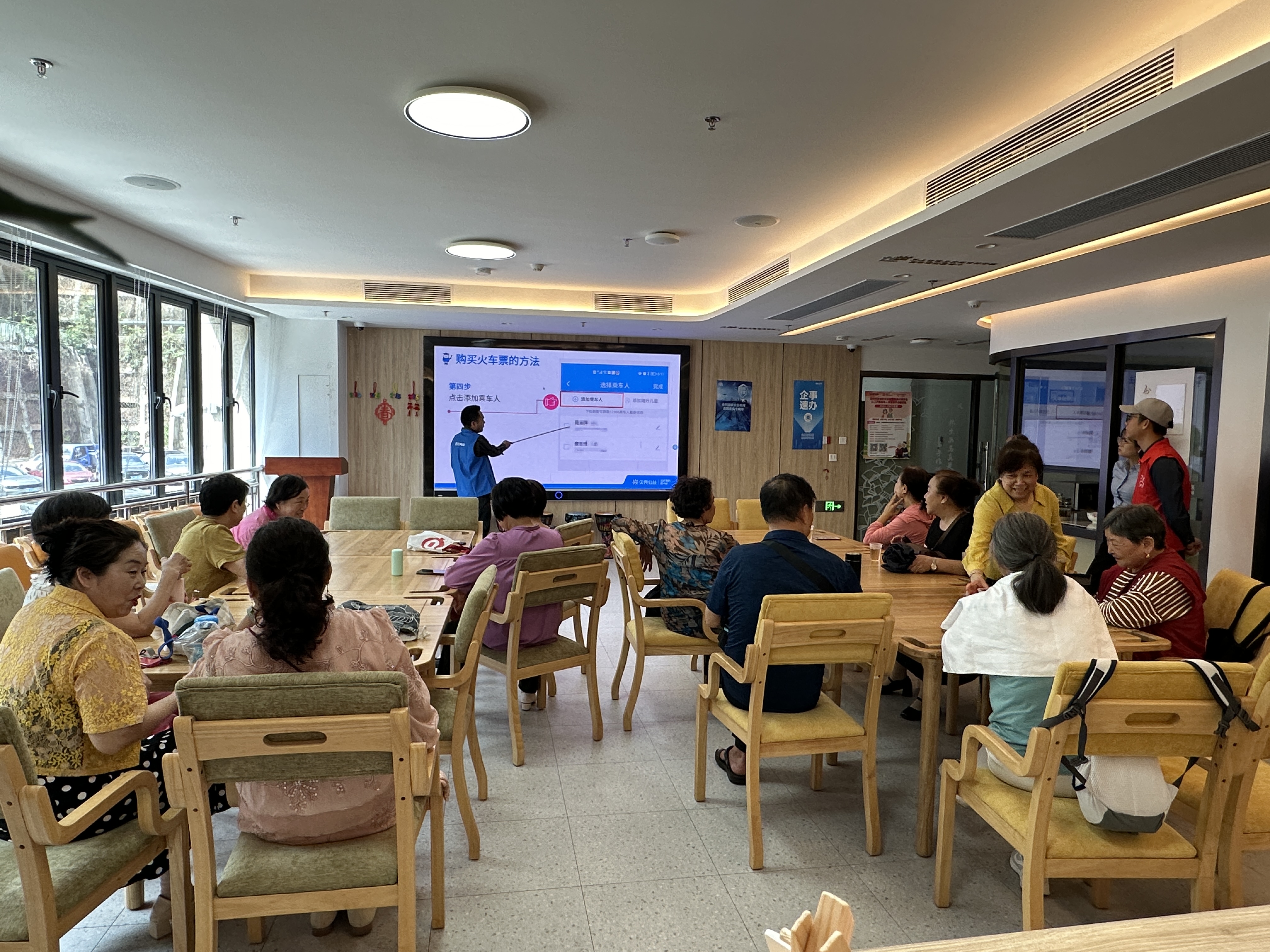 罗湖区家园网讯:2025年4月22日,金岭社区党委联动长者服务站开展“机”智生活,乐享银龄——长者手机课堂学习活动(使用12306购买车票)。
